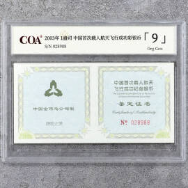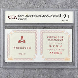 2003年1/3盎司中国首次载人航天飞行成功彩金币证书
