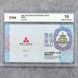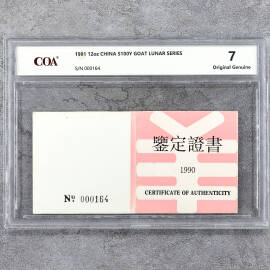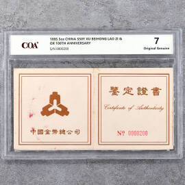 1995年5盎司徐悲鸿诞辰100周年老子出关银币证书