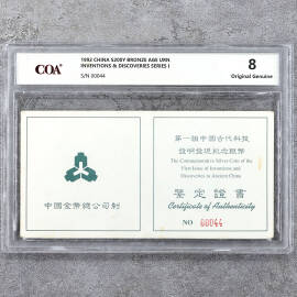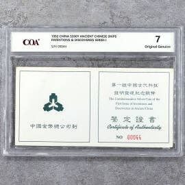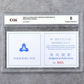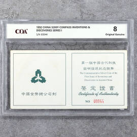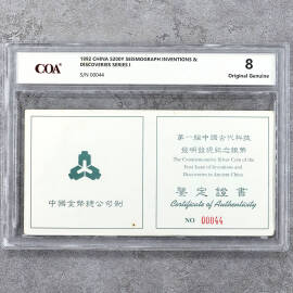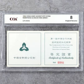 1992年1公斤古代科技第1组蝴蝶风筝银币证书