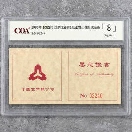 1995年1/3盎司丝绸之路第1组张骞出使西域金币证书