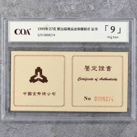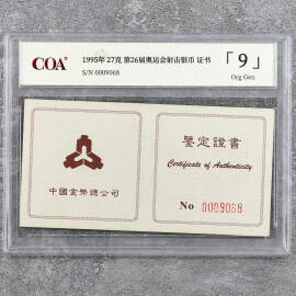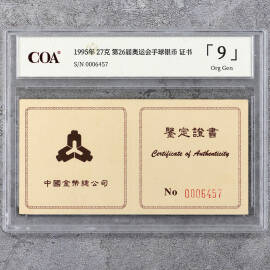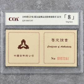 1995年27克第26届奥运会体操银币证书