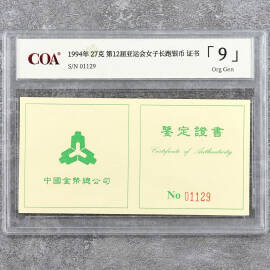 1994年27克第12届亚运会女子长跑银币证书