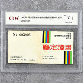 1990年5盎司第16届冬奥会速度滑冰银币证书