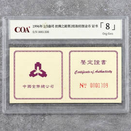 1996年1/3盎司丝绸之路第2组取经图金币证书