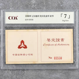 1998年 1/10盎司 龙文化金币 证书