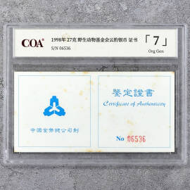 1998年27克野生动物基金会云豹银币证书