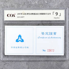 1997年15克野生动物基金会大熊猫银币证书