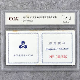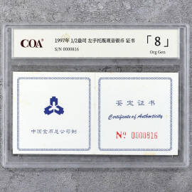 1997年1/2盎司右手托瓶观音银币证书