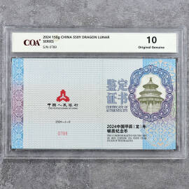 2024年150克生肖龙银币证书