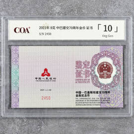 2021年8克中巴建交70周年金币证书