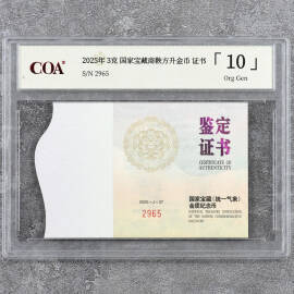 2025年3克国家宝藏商鞅方升金币证书