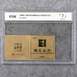 1988年1/2盎司第24届奥运会女子剑术金币证书