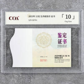 2025年15克生肖蛇铂币证书