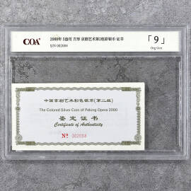 2000年5盎司方形京剧艺术第2组彩银币证书
