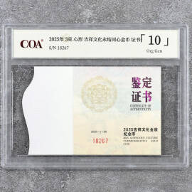 2025年3克吉祥文化永结同心金币证书
