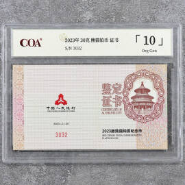 2023年30克熊猫铂币证书