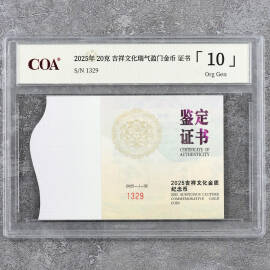 2025年20克吉祥文化瑞气盈门金币证书