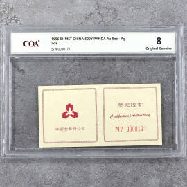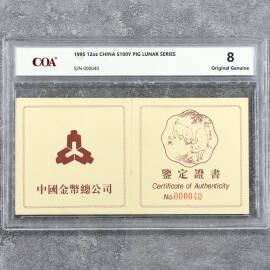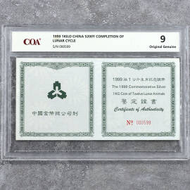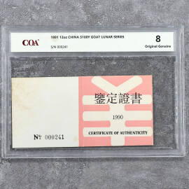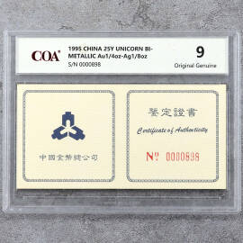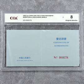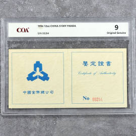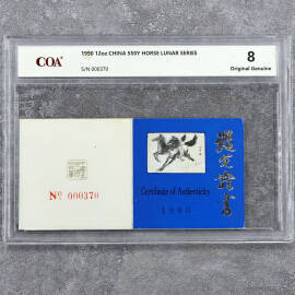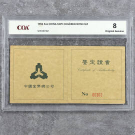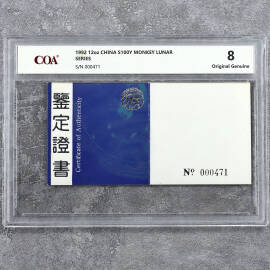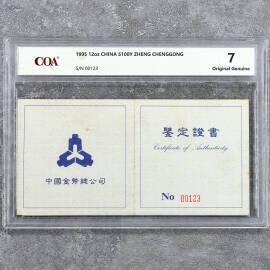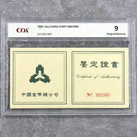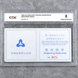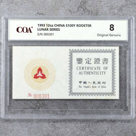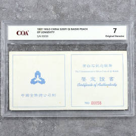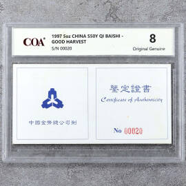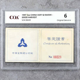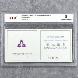 1997年12盎司齐白石豆荚昆虫图银币证书