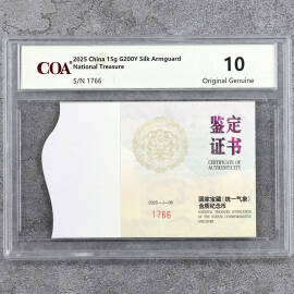 2025年15克方形国家宝藏锦护臂彩金币证书