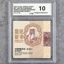 2012年1/4盎司五台山金币证书