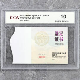 2025年5克吉祥文化蔓蔓日茂金币证书