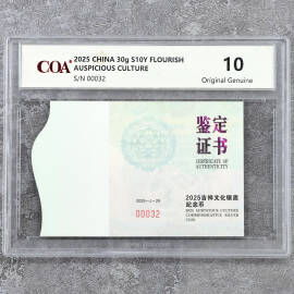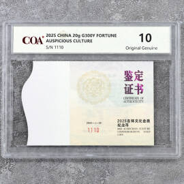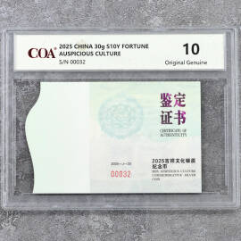2025年30克吉祥文化瑞气盈门银币证书