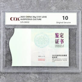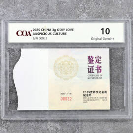 2025年3克吉祥文化永结同心金币证书