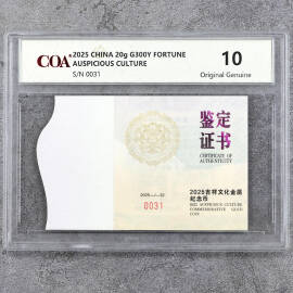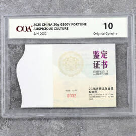 2025年20克吉祥文化瑞气盈门金币证书