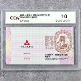 2022年3克二十四节气光阴的故事冬彩金币证书
