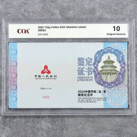 2024年150克生肖龙银币证书