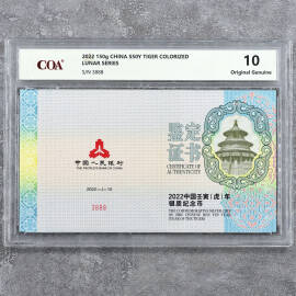 2022年150克方形生肖虎彩银币证书