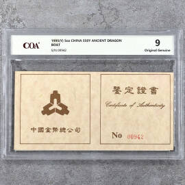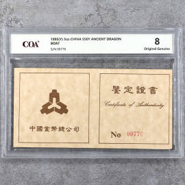 1995年5盎司古代航海船龙舟图银币证书