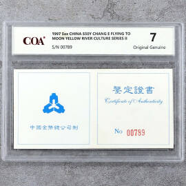 1997年5盎司黄河文化第2组嫦娥奔月银币证书
