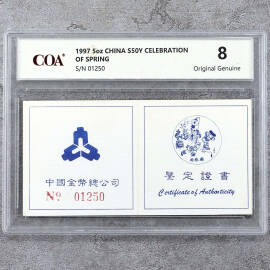 1997年5盎司迎春图银币证书
