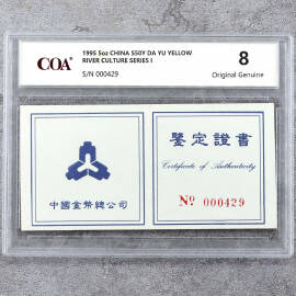 1995年5盎司黄河文化第1组大禹治水银币证书