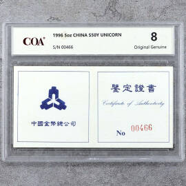1996年5盎司麒麟银币证书