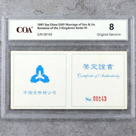 1997年5盎司三国演义第3组孙刘联姻银币证书