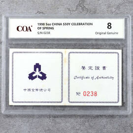 1998年5盎司迎春图银币证书