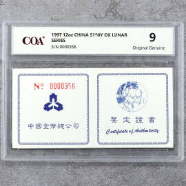 1997年12盎司生肖牛银币证书