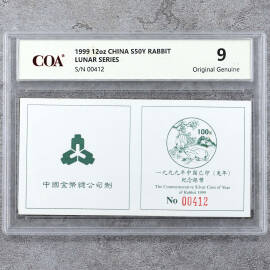1999年12盎司生肖兔银币证书