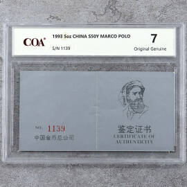 1993年5盎司马可波罗银币证书
