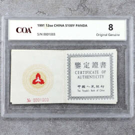 1991年12盎司熊猫银币证书