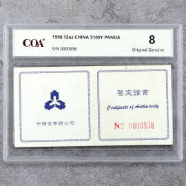 1996年12盎司熊猫银币证书
