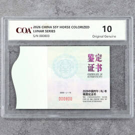 2000年5盎司方形京剧艺术第2组彩银币证书