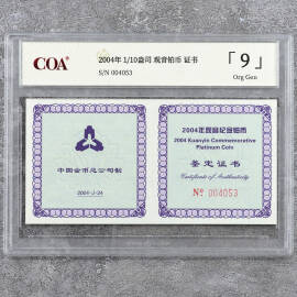 2004年1/10盎司观音铂币证书