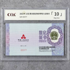 2021年15克联合国生物多样性大会银币证书