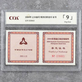 2004年1/10盎司观音幻彩金币证书