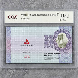 2021年5克北京冬残奥会金币证书