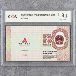 2014年1/4盎司中法建交50周年金币证书