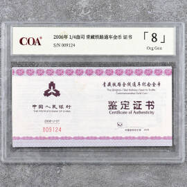 2006年1/4盎司青藏铁路通车金币证书
